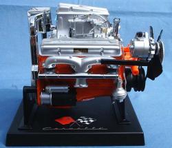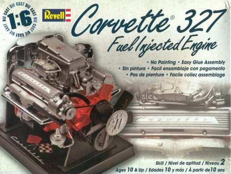 Nachdem Revell im Jahr 2004 die beiden Motoren 350c.i. LT-1 Chevy Small Block und Ford 427 SOHC auf den Markt gebracht hatte, wurde 2005 mit dem Bausatz des Chevrolet Corvette 327 Fuel Injection Motors nachgelegt. Das Design der Verpackung hat sich geändert, das hohe Gewicht ist geblieben. Bei einem Maßstab von 1 : 6 machen sich die Metallbauteile doch bemerkbar.