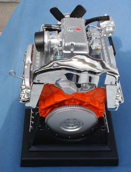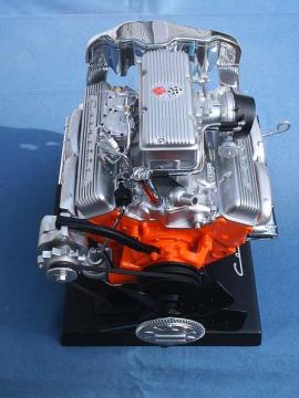 Farbe zu verwenden ist mehr als überflüssig. Der Motorblock und die Zylinderköpfe sind wie beim anderen Chevy Motor, dem 350c.i. LT-1 Chevy Small Block orange lackiert. Nicht nur die Lackqualität sucht ihresgleichen, sondern auch die Decals auf den Luft und Ölfiltern.
