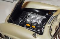 Der Bausatz wurde natürlich nicht für so eine Detailsuperung geplant und war nur mit Hilfe sehr umfangreicher Recherchen und Originalfotos, die mein Sohn Pascal in der Classic Stadt aufgenommen hat, zu bauen. Bei den Fotos der original Autos stellte sich heraus, das es auch hier große Abweichungen von Fahrzeug zu Fahrzeug gab. Das hängt vom Zustand der Restaurierung, vom perfekt bis zu original mit leichten Betriebsspuren oder technischen Verbesserungen für einen besseren Alltagsbetrieb ab, vielleicht auch vom Baujahr. Ab 1962 wurde zum Beispiel die Trommelbremsen durch eine Scheibenbremsanlage von Dunlop ersetzt. Mein Modell hat noch die älteren Trommelbremsen.