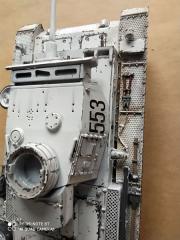 Zur Lackierung: Die Ketten wurden mit mit Tamiya deutsches Panzergrau, Weiss mit etwas Xf-63 Panzergrau und 10 % Xf-60 Dunkelgelb, verdünnt mit Gunze 400 behandelt.