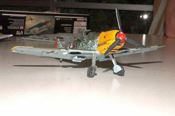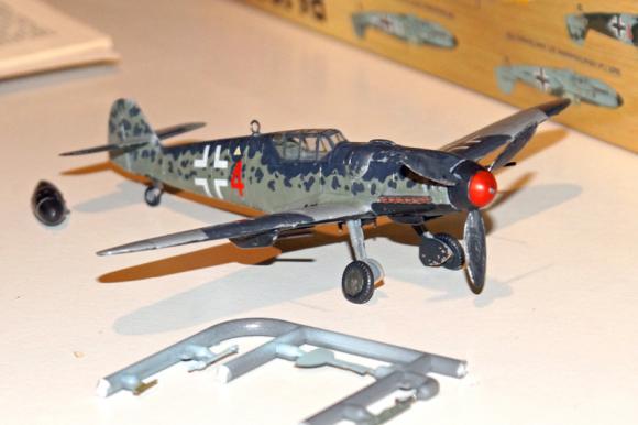 Es handelt sich hier um einen Revell-Bausatz der Micro-Wings Serie im Maßstab 1:144 auf dem Karton ist das Jahr 2012 aufgedruckt, also schon etwas älter (Tatsächlich stammt die Form aus dem Jahr 1973, lediglich die Decals sind neu.), die Modelle von sweet oder Eduard/Mark I sind wesentlich besser detailliert, allerdings keine E, sondern spätere F oder G. Armory hat mehrere Es im Programm, von Takara gibt es mehrere Fertigmodelle von dieser Version und Beacon models wollte 2021 eigentlich im Rahmen einer Battle of Britain Seria eine 109 E und eine Spitfire Mk I in 1:144 herausbringen. Soweit ich mich erinnern kann, hat dieser Bausatz etwa vier oder fünf Euro gekostet...