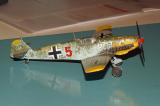 Robert hat seine Messerschmitt Bf109 E-4 vom JG 2 fertig gestellt. An dem Tamya Modell im Maßstab 1:72 hat er wieder verschiedene Maltechniken angewandt. Das Hellblau der Unterseiten und Rumpfseiten sowie RLM Grau der Grundtarnung und die gelben Flächen wurden mit der Airbrush aufgetragen. Für die dunkelgrünen Elemente nutzte er Farbstifte von AK. Beim JG2 wurde die Standardtarnung allerdings an den Rumpfseiten mit Pinseln und Schwämmen weiter nach unten gezogen. Auch Robert hat dieses Tarnmuster mit kleinen Schwämmen aufgebracht. Die Decals stammen aus verschiedenen Quellen. Die Kreuze sind aus dem Tamya Baukasten, der Bonzo Hund und das JG2 Wappen aus einem AZ Kit.