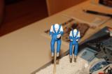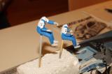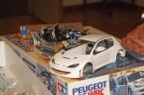 Stefan hatte wieder seinen Peugot 206 WRC1999 von Tamya in 1:24 dabei. Er wollte uns von seinen Fortschritten beim Bau des Modells berichten. Leider musste er früher weg. So sprach er nur kurz über die Bemalung seiner Fahrer/ Beifahrerfiguren. Es gibt da oft das Problem, die Figuren beim Lackieren zu halten. Stefan klebt für diese Arbeiten von hinten hölzerne Schaschlik-Spieße an die kleinen Männer und kann sie so beim Bemalen gut drehen.