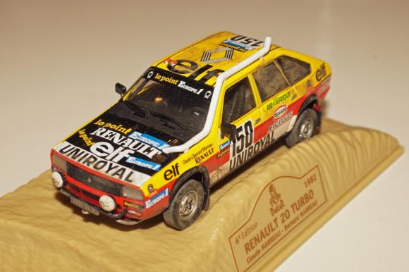 Reiner stellte uns seine Renault R20 in 1:43 fertig vor. Das Modell soll übrigens das Siegerfahrzeug der Rally Paris Dakar von 1982 darstellen, das damals von Claude Marreau gemeinsam mit seinem Bruder und Navigator Bernard Marreau gefahren wurde. Da die Gebrüder Marreau vorher an der Rally mit einem R4 teilgenommen hatten, was keiner von uns glauben wollte, hatte er uns einige Fotos eines Modells ihres R4 mitgebracht (oben).