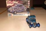 Ein zeitloses (für mich) schönes Modell von Revell. Ich finde das 34er Ford Coupe als Basis für einen Hot Rod am schönsten, schöner als der 32er. Eine harmonische Form! Auch das ZZ Top Auto ist ein 34er Ford. Echte 34er aus Blech sind als Basis rar und teuer geworden. Es gibt auch in Amerika Kunststoffnachbauten in 1:1. Man chopped das Dach,baut ein neues Fahrwerk, einen neuen Innenraum, einen V8 Motor mit guter Power ( 350-400 PS) und eine tolle Lackierung. Es ist ein relativ kleines Auto.