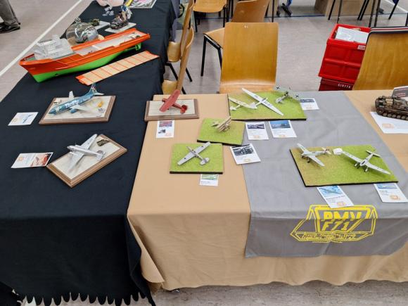 Der PMV Frankfurt konnte 3 Tische buchen. Da ein Nachbar-Aussteller erkrankt war, durften wir uns eztwas weiter ausbreiten. Johannes stellte historische Feuerwehr Fahrzeuge und Figuren aus. Seine Sammlung wächst beständig. Ernst zeigte Flugzeuge in 1:72 und 1:144. Beide waren Samstags und Sonntags vor Ort.