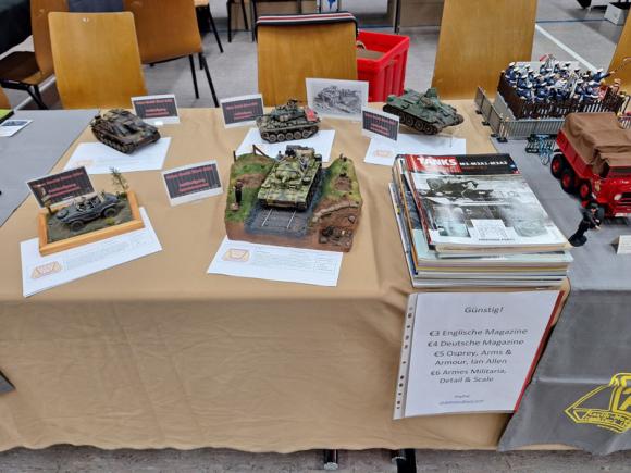 Samstags verstärkte Hans die Zivilfahrzeugfraktion mit seinen 1:87er Fahrzeugen, Sonntags stellte Christoph einige seiner Militärfahrzeuge mit ausführlichen Beschreibungen zur Schau.
